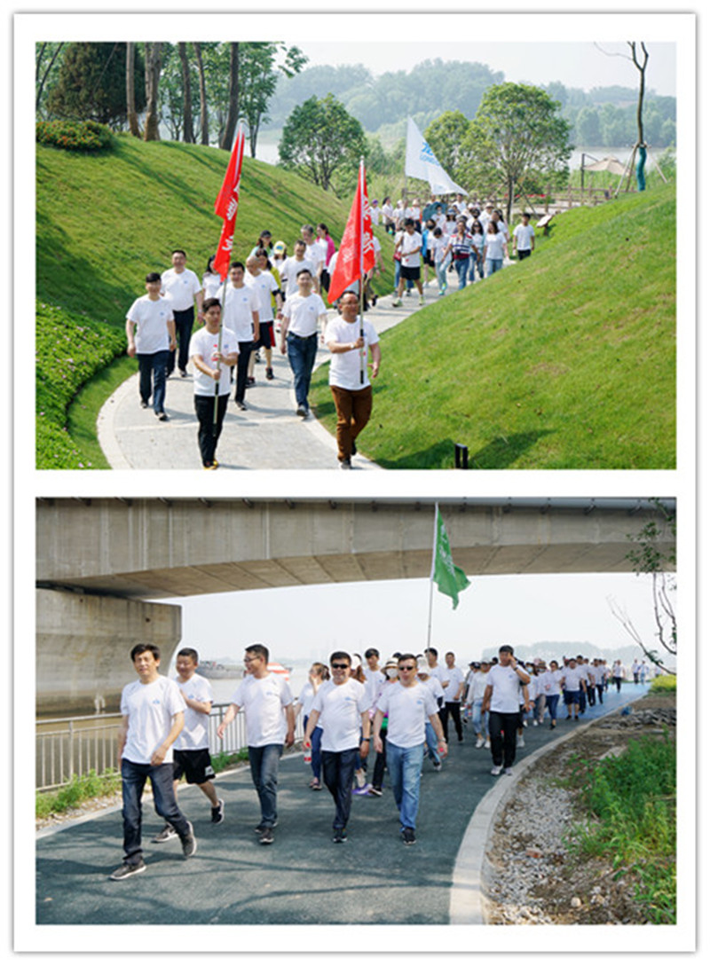 活動(dòng)開(kāi)始,首先,總經(jīng)理王智勇代表公司致詞,做了熱情洋溢的動(dòng)員,接著,參加活動(dòng)的各位領(lǐng)導(dǎo)為公司本部及四個(gè)子公司共五支代表隊(duì)進(jìn)行了集中授旗,最后,隨著公司執(zhí)行董事張勇的隆重宣布和發(fā)令槍聲的響起,健步走活動(dòng)正式開(kāi)始。大家從風(fēng)景如畫的三河六岸公園音樂(lè)噴泉廣場(chǎng)出發(fā),沿著步道,一直走到今年新建成的南水北調(diào)源頭公園氣膜館。大家一個(gè)個(gè)精神飽滿,熱情高漲,意氣風(fēng)發(fā),邊走邊交流,細(xì)數(shù)著公司過(guò)去及現(xiàn)在發(fā)展歷程中的點(diǎn)點(diǎn)滴滴,同時(shí),欣賞著公園美景,感受著健步走帶來(lái)的歡樂(lè),大家一路走,一路笑,各種喜悅寫滿了笑臉。