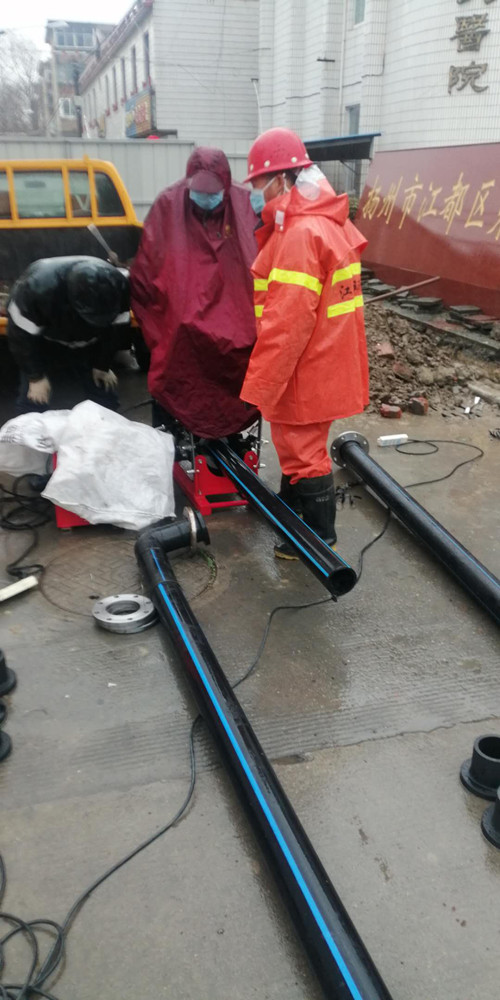 疫情就是命令,保供水就是責(zé)任。龍泉公司在接到緊急任務(wù)后,立即明確專人負(fù)責(zé),成立施工突擊隊(duì),并迅速派人赴區(qū)第三人民醫(yī)院擴(kuò)建工程現(xiàn)場(chǎng)實(shí)地查勘,向院方詳細(xì)了解擴(kuò)建工程供水需求、施工進(jìn)度安排等,并與院方共同研究,現(xiàn)場(chǎng)確定擴(kuò)建工程的接水方案。2月15日上午,搶修人員佩戴口罩、安全帽,進(jìn)行了體溫測(cè)量,冒著雨雪趕赴現(xiàn)場(chǎng),投入到緊張的施工工作中,由于前期施工方案細(xì)致、工作準(zhǔn)備充分,經(jīng)過10個(gè)小時(shí)的奮戰(zhàn),于當(dāng)天晚上8點(diǎn)順利完成了自來水管道的擴(kuò)建安裝任務(wù)。