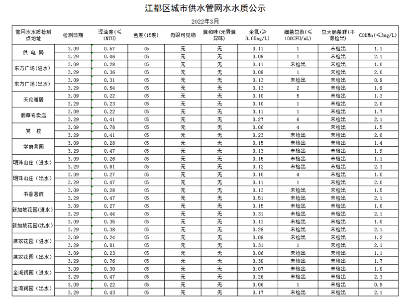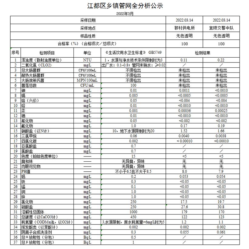 水質(zhì)公示