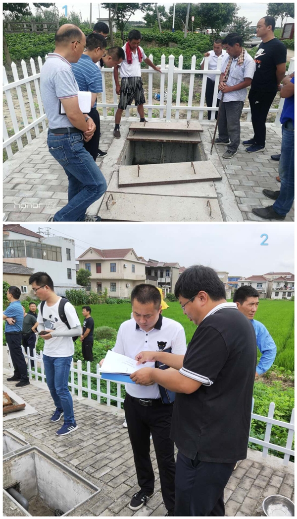 1、2為督查組檢查農村污水設施運轉工作現場