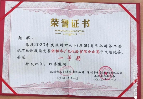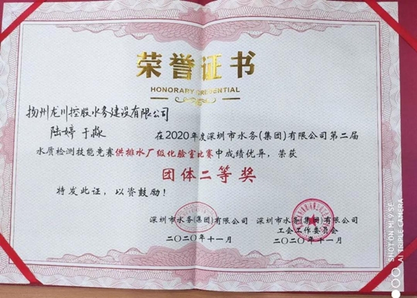 經(jīng)過5天的激烈角逐,憑借著扎實(shí)的理論基礎(chǔ)、嫻熟的現(xiàn)場(chǎng)操作和默契的團(tuán)隊(duì)合作,揚(yáng)州龍川水務(wù)公司陸婷榮獲供排水廠級(jí)化驗(yàn)室理論、綜合比賽“雙一等獎(jiǎng)”,陸婷、于淼榮獲供排水廠級(jí)化驗(yàn)室比賽團(tuán)體二等獎(jiǎng)。