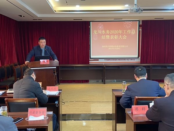 2021年129日上午揚州龍川水務公司召開2020年度總結暨表彰大會,公司全體領導班子成員、受表彰的先進集體、先進個人代表、各單位負責人及部分職工代表共40余人參加了本次會議,會議由常務副總經理劉書政同志主持。