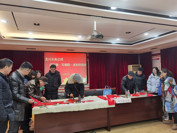 同時,當天下午,由龍川水務公司總經理王智勇同志、公司工會領域的負責同志以及相關工作人員組成的新春走基層特別慰問小組,向各部門、子公司相關行政辦公室贈送了精心準備的“福”字和虎年相關的掛件禮物,并向他們致以新年的祝福和問候。通過這一活動,既能增強員工凝聚力和歸屬感,也為我們廣大的水務員工較好地展現了中國傳統節日的風俗習慣和文化內涵。