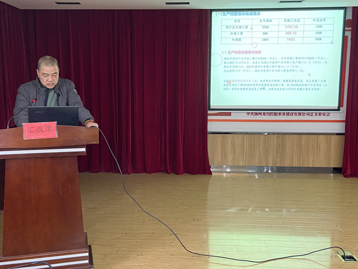 在本次大會(huì)匯報(bào)交流環(huán)節(jié),分別聽(tīng)取了計(jì)劃財(cái)務(wù)部、運(yùn)營(yíng)技術(shù)部、黨群工作部、自來(lái)水公司、惠民區(qū)域供水公司、龍泉建設(shè)工程公司、龍川污水處理公司等七個(gè)部門單位2021年工作總結(jié)報(bào)告。各部門、子公司負(fù)責(zé)人分別圍繞2021年全年生產(chǎn)經(jīng)營(yíng)指標(biāo)、重點(diǎn)工作完成情況、存在的主要問(wèn)題、解決對(duì)策以及2022年工作計(jì)劃作了交流匯報(bào)。