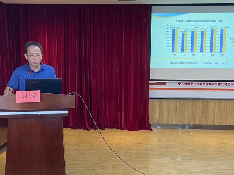 7月21日上午,揚州龍川水務召開2022年上半年工作總結會,公司總經理王智勇等全體班子成員、公司各部門及各下屬子公司中層副職以上管理人員70余人參會,會議由常務副總經理劉書政同志主持。