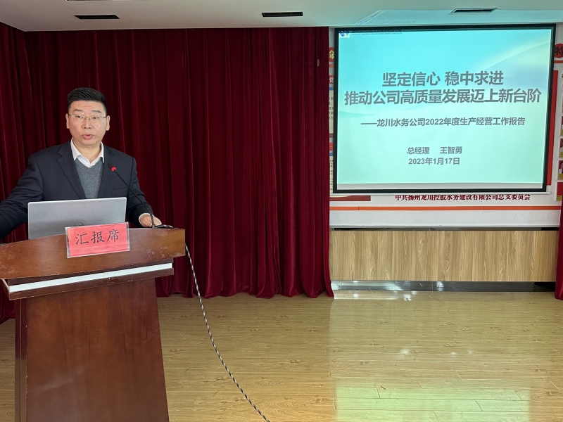 在本次大會匯報交流環(huán)節(jié),分別聽取了計劃財務(wù)部、運營技術(shù)部、黨群工作部、自來水公司、惠民區(qū)域供水公司、龍泉建設(shè)工程公司、龍川污水處理公司等七個部門單位2022年工作總結(jié)報告。各部門、子公司負責人分別圍繞2022年全年生產(chǎn)經(jīng)營指標、重點工作完成情況、存在的主要問題、解決對策以及2023年工作計劃作了交流匯報。