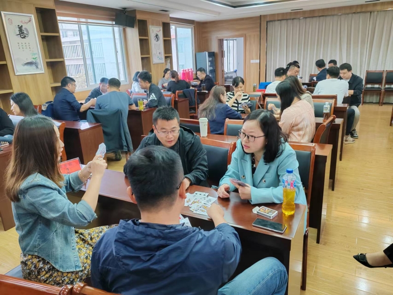比賽遵循“公平、公正、公開”的比賽規(guī)則,通過抽簽的方式確定對陣雙方,經(jīng)過賽前簡單的開幕儀式以及競賽規(guī)則解釋后,各位選手迅速進入競技狀態(tài)。比賽現(xiàn)場,各組選手密切配合,精確計算、沉著應(yīng)戰(zhàn),以牌會友、競技交流,整個比賽氣氛緊張而愉快,大家充分利用自己的智慧和技巧,展示出了高超的牌技和團隊協(xié)作能力,賽出了風(fēng)格和水平。